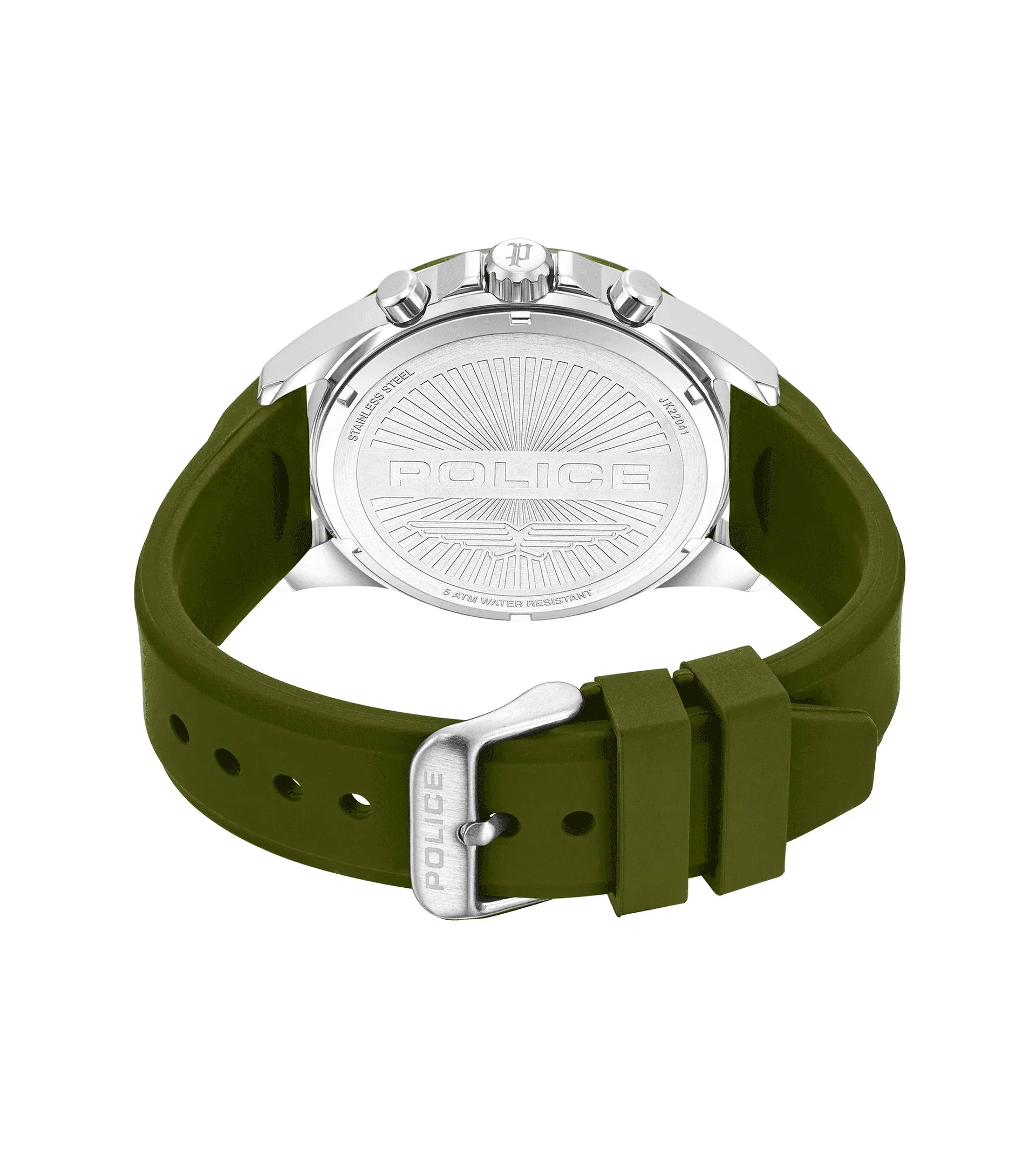 Police Motion Gents Multifunction Green Dial Silicon Strap Watch